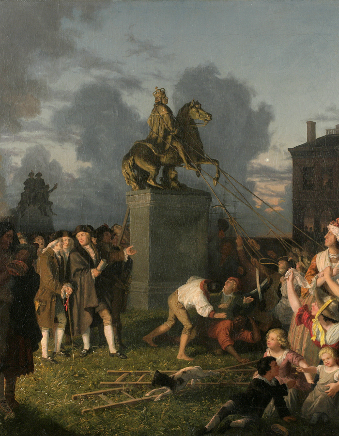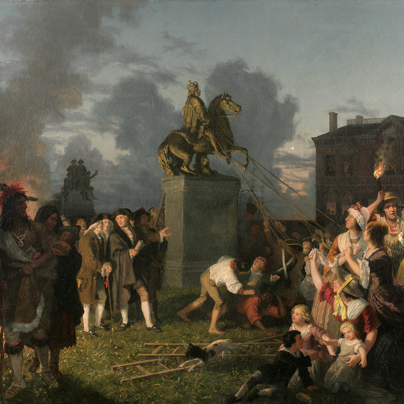 Johannes Adam Simon Oertel, Pulling Down the Statue of King George III, New York City, 1852-1853, oil on canvas. The New York Historical, Gift of Samuel V. Hoffman, 1925.6. Courtesy of The New York Historical