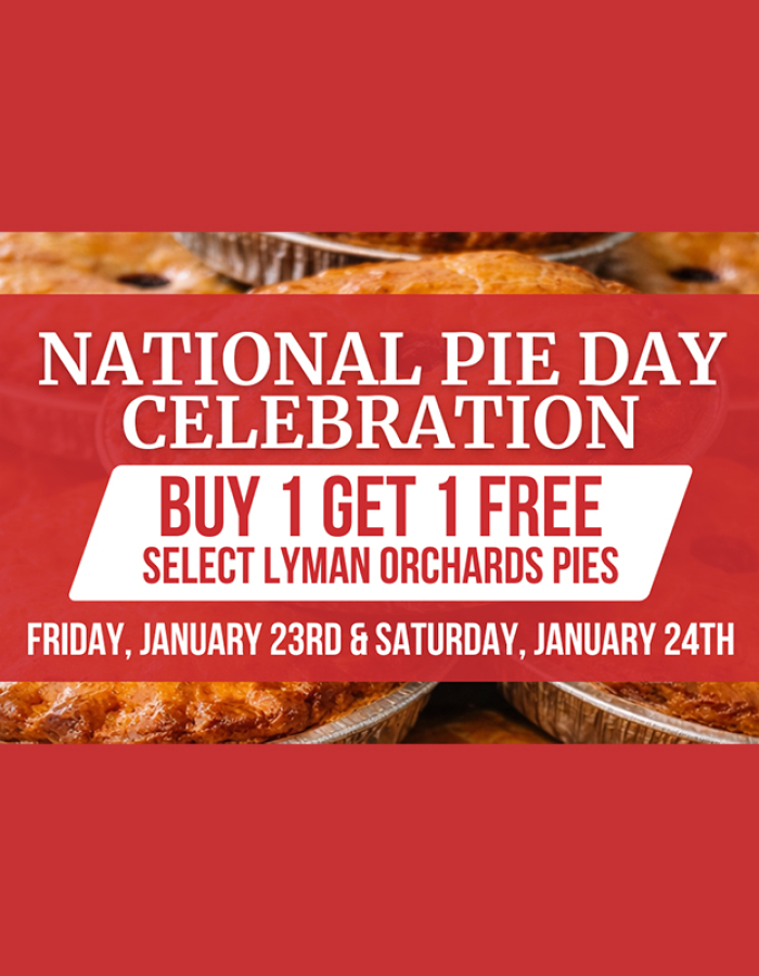 Celebrate National Pie Day at Lyman Orchards with a sweet deal you won't want to miss! For two days only, we're bringing back some of our most-loved seasonal pie favorites and offering Buy One, Get One Free select Lyman Orchards Pies! Friday, January 23 & Saturday, January 24, 2026. This promotion will take place in store only.