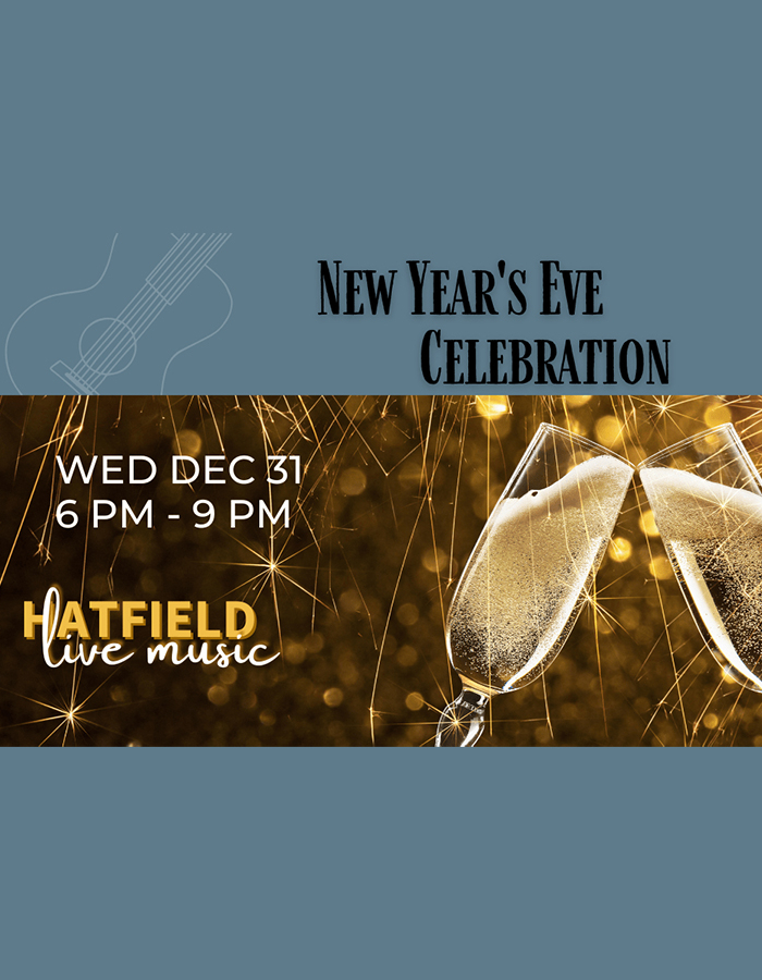 Join us for our New Year's Eve Celebration Wednesday, December 31st at 1741 Pub & Grill! Celebrate the New Year at 1741 Pub & Grill with live music from Hatfield! Come try our delicious New Year's food and drink specials while he plays from 6pm-9pm.