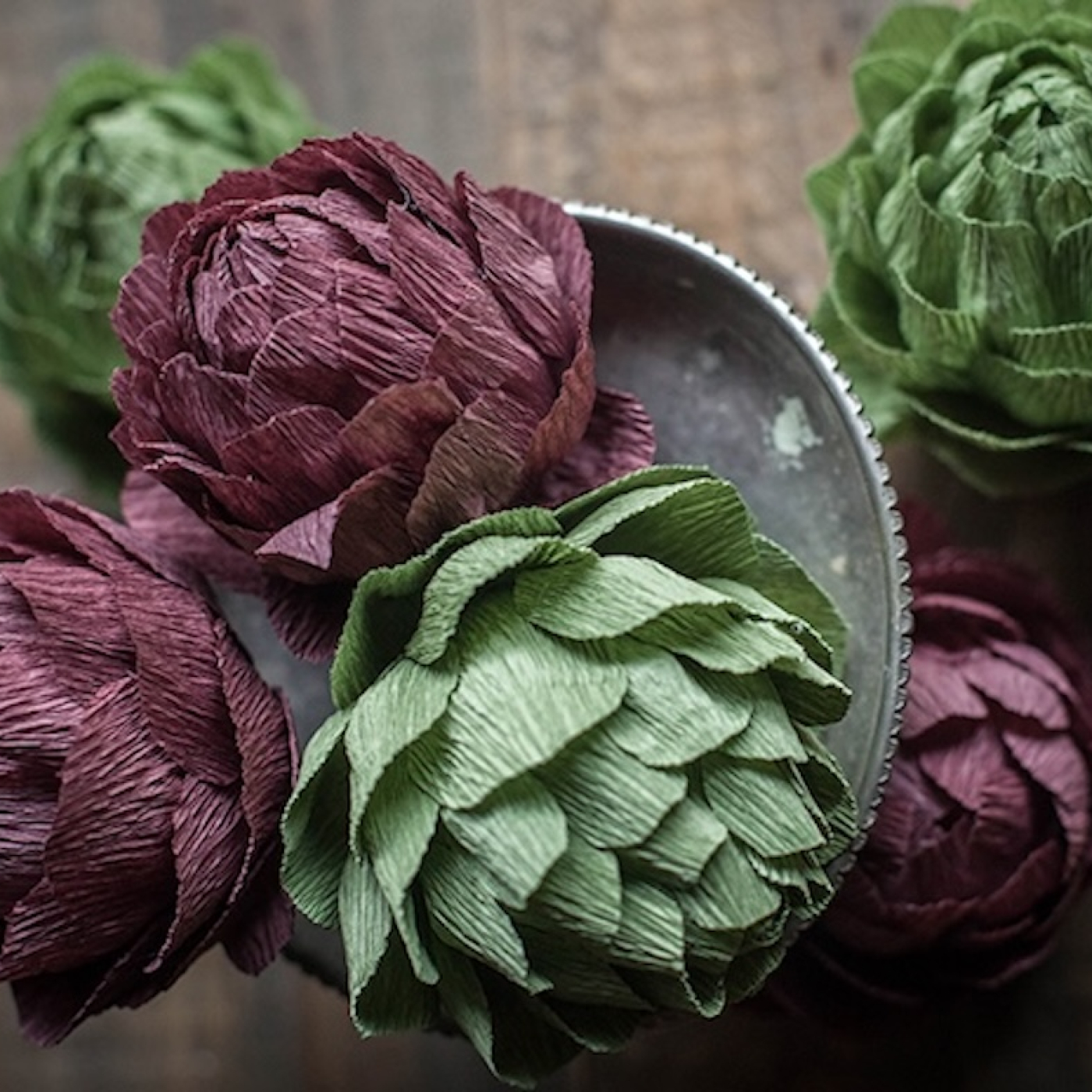 Discover the unexpected beauty of spring's most sculptural vegetable. Under the expert guidance of paper artist Debra Wood, you'll transform delicate crepe paper into a botanically accurate artichoke—complete with its layered bracts and architectural form.