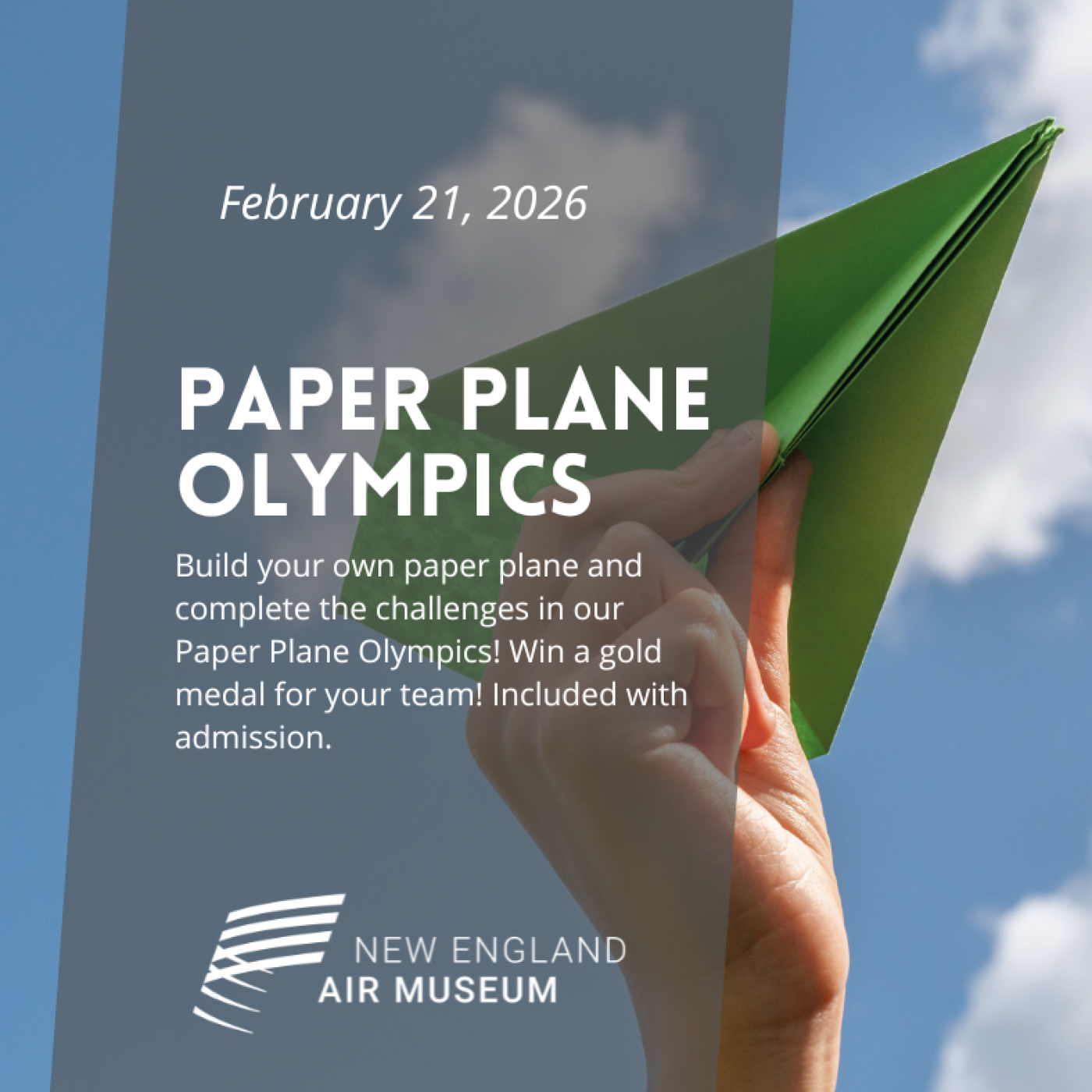 Build your own paper plane and complete the challenges in our Paper Plane Olympics! Win a gold medal for your team! Included with admission.