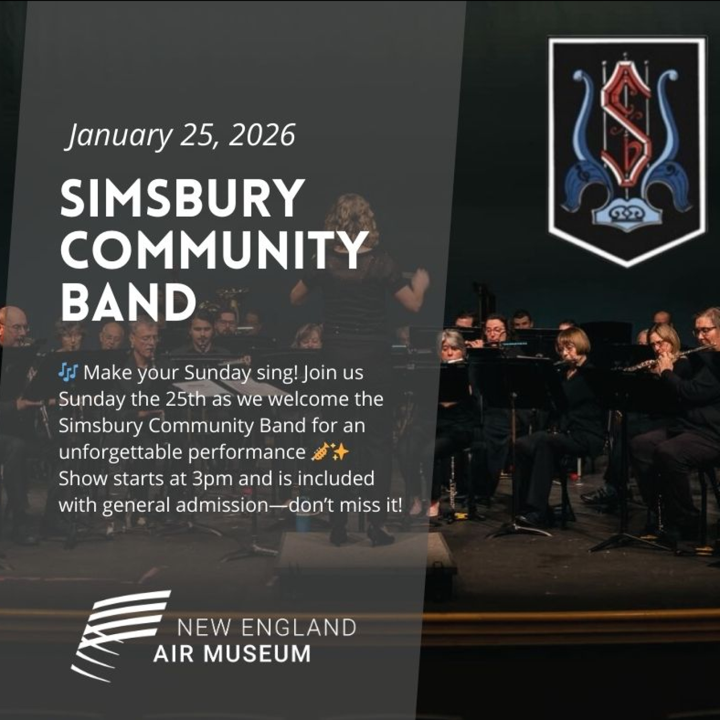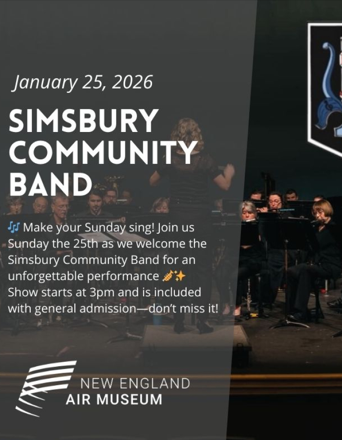 Join us Sunday January 25th, as we welcome the Simsbury Community Band for an unforgettable live performance. Enjoy an afternoon filled with great music and community spirit. The show begins at 3pm and is included with general admission, so bring your friends and family and don’t miss this special event.