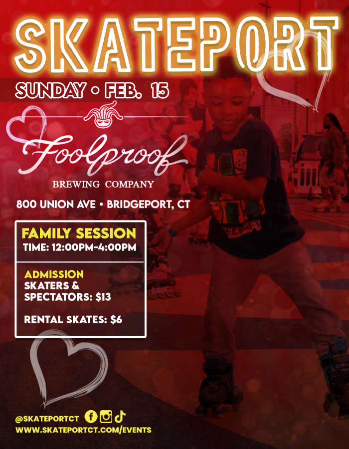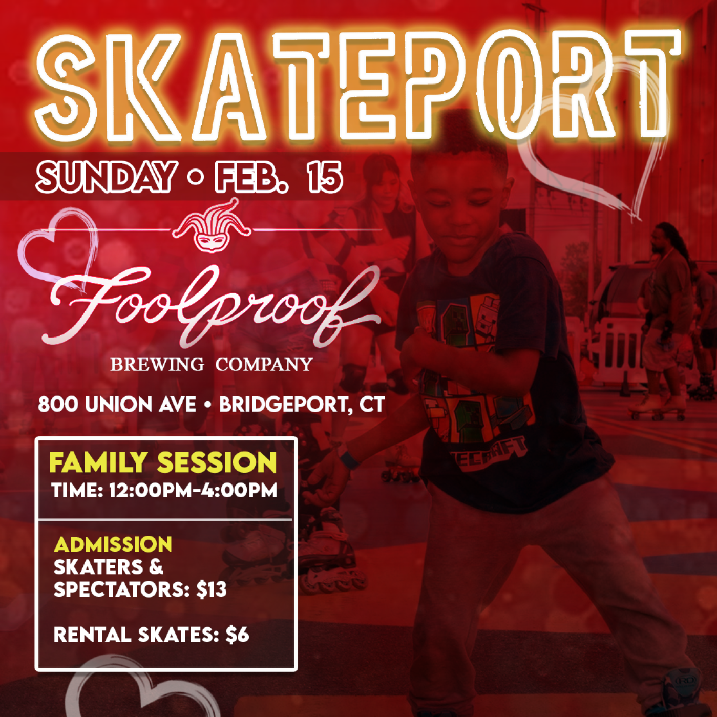 Join Skateport at Foolproof Brewing Company for Valentine's Day weekend-- skate at our all ages Family Session from 12:00-4:00pm