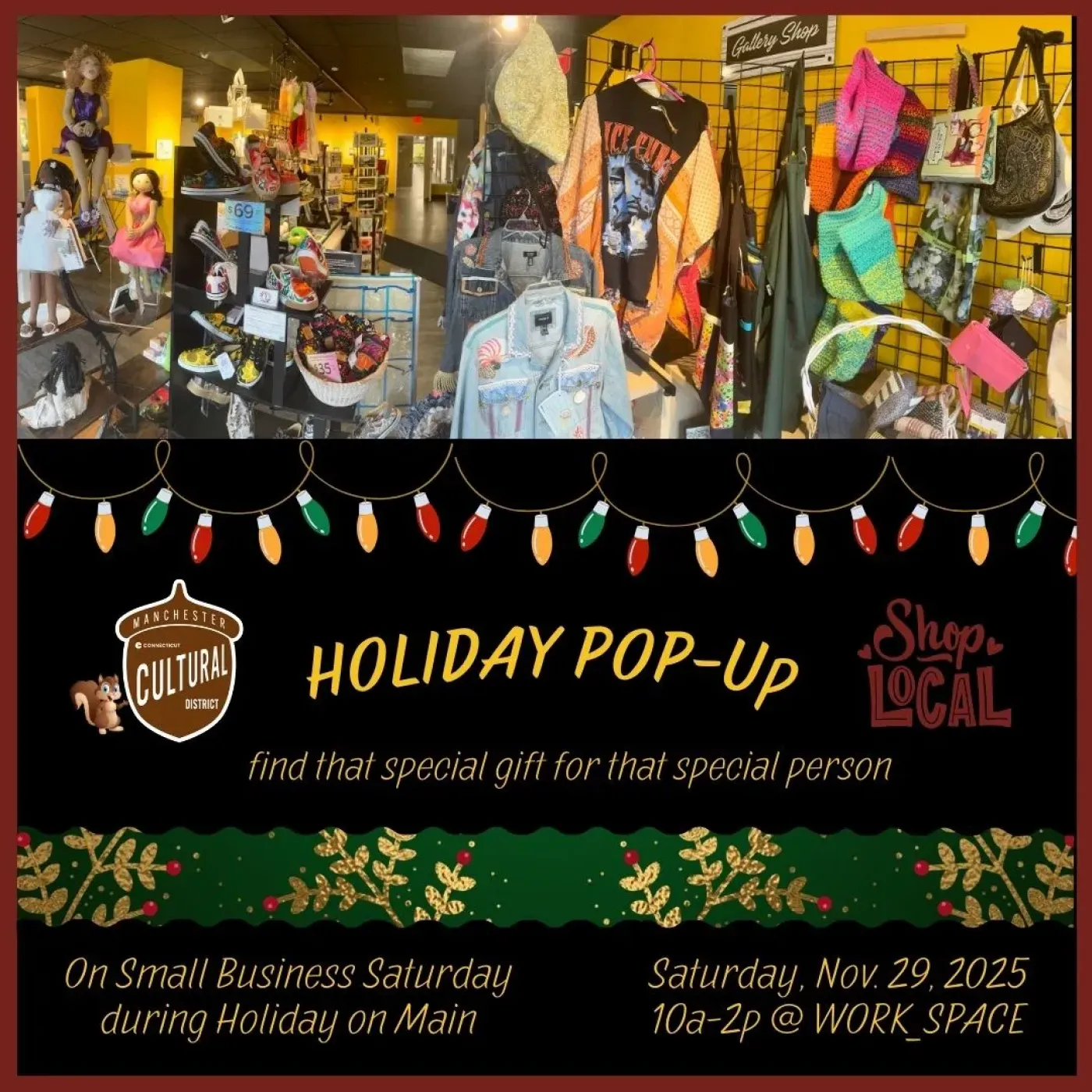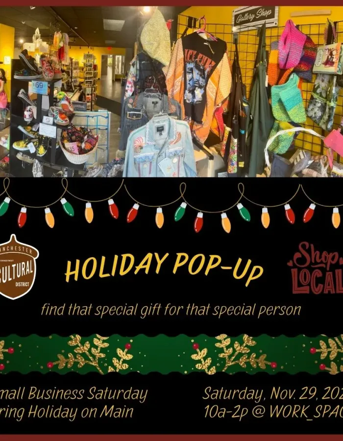 As part of Downtown Manchester’s Holiday on Main and Small Business Saturday, join us for a festive Holiday Pop-Up Market on Saturday, November 29th 10am to 2pm! Local makers, artists, and entrepreneurs will showcase unique gifts, handmade treasures, and seasonal treats—perfect for your holiday shopping. With over 21 participating artists and makers, you’re sure to find something for everyone on your list.