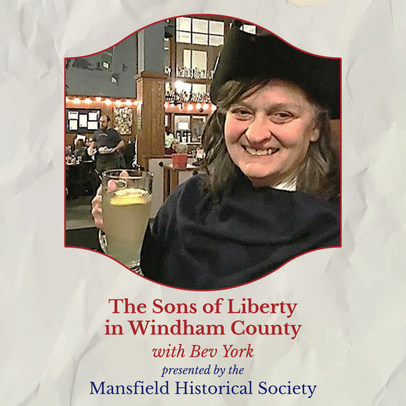 About the presenter: Bev York is well-known locally for her educational programs and historical reenactments. She has served the history community in many capacities. Most recently, she was the Education Director at The American Museum in Willimantic. Prior to that, she served as the Museum Education and Program Director at the Windham Textile & History Museum in Willimantic, and was previously its Director. York has also been the site administrator at the Nathan Hale Homestead in Coventry. In addition, she has taught history as an adjunct instructor at Quinebaug Valley Community College for nineteen years. York received a BS in Art Education from Central Connecticut State University and an MS in History Education from Eastern Connecticut State University.