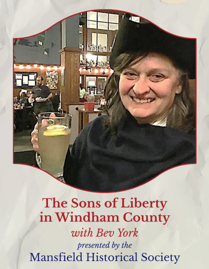 250 years ago, American colonists fought for independence from British rule. Bev York’s presentation will illustrate some of the many ways that Connecticut’s men and women participated in the cause. Back then, Windham County was one of the hotbeds of resistance activity. Some of the same patriots who served on the Connecticut Assembly and on the Governor’s Council of Safety were radical rebels by night. And there were Ladies of Liberty who were leaders in the resistance effort, too. As always, Bev will make the history lesson both informative and entertaining.