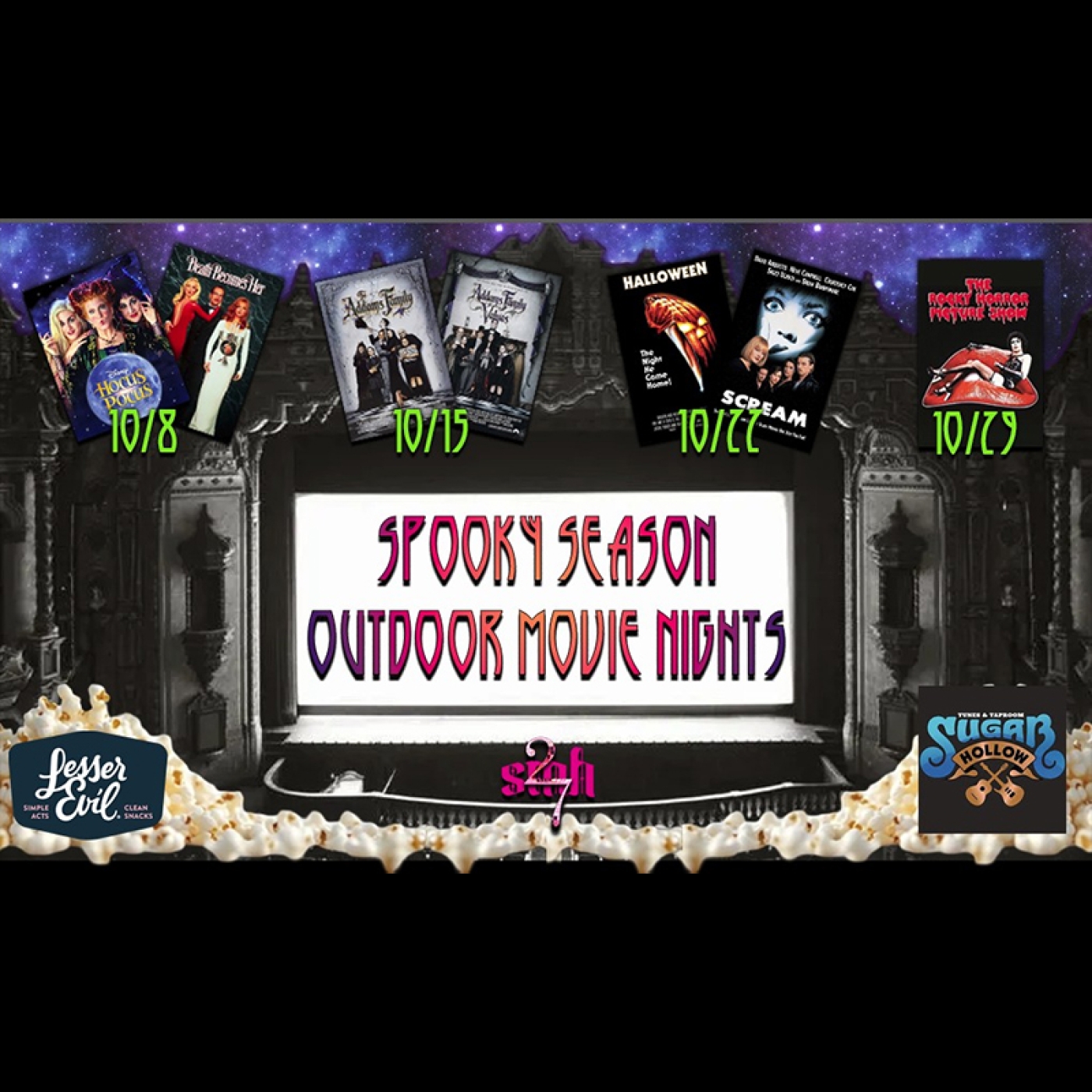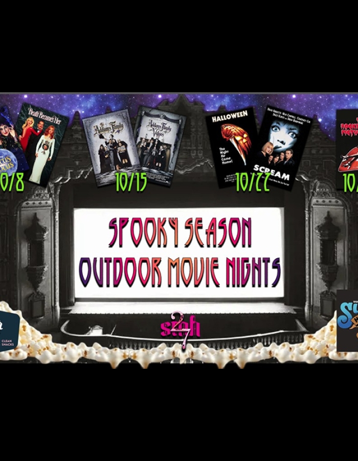 Movies will be playing outside under the stars (see below for lineup). Fire pits will be on, specialty spooky cocktails, bar food & snacks will be available.