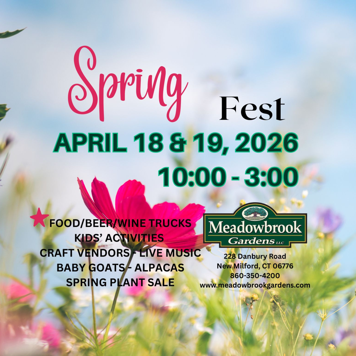 Meadowbrook Gardens is holding its annual Spring fest on 4/18 & 4/19 from 10-3. We will have food/beer/wine trucks, kids' activities, craft vendors, live music, baby goats & Meadowbrook's spring plant sale. This event is rain or shine! Come join us!