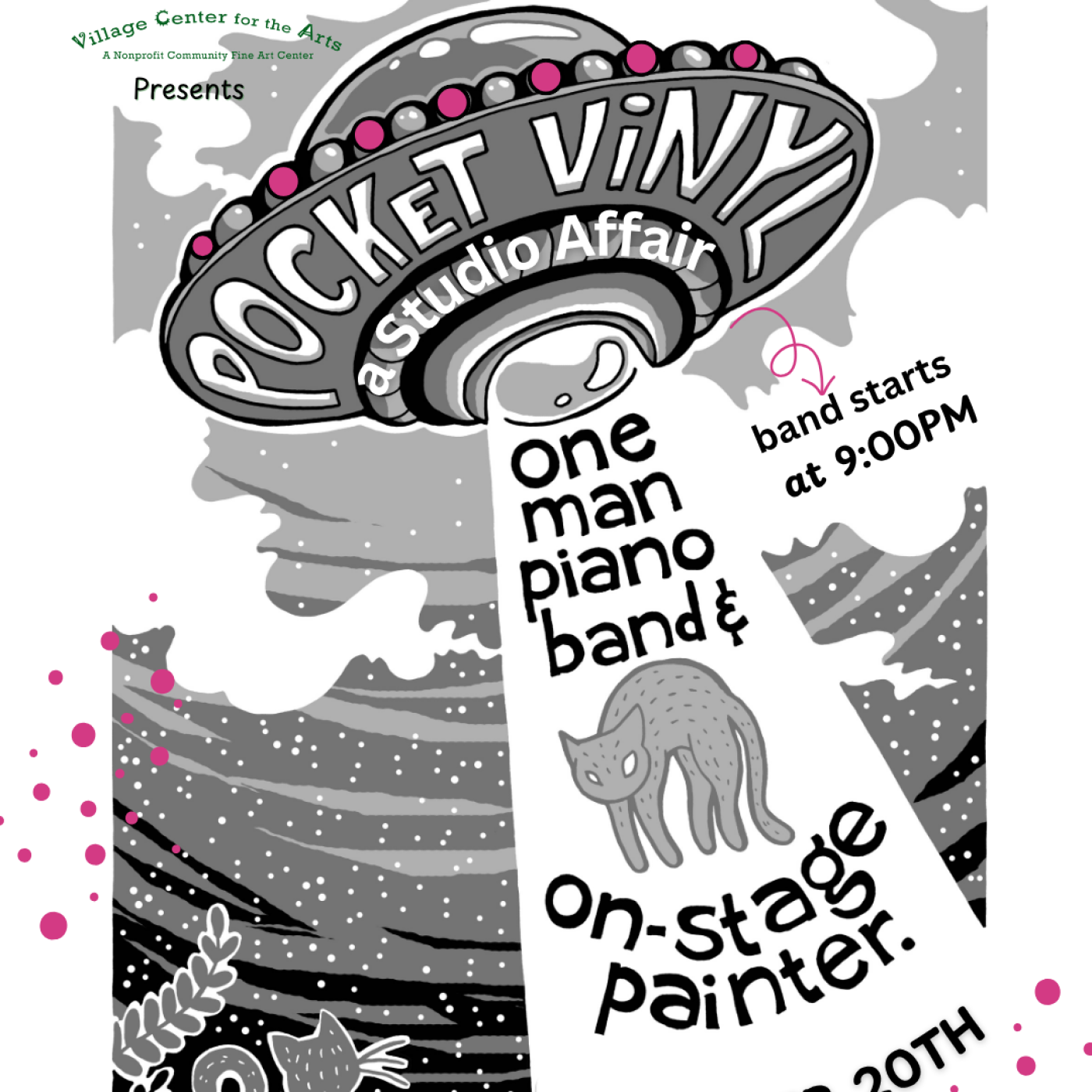 Join us at Village Center for the Arts for an unforgettable evening of creativity, music, and live art! Our next Studio Affair features the one-of-a-kind duo Pocket Vinyl, an incredibly unique piano-slamming, live-painting band from Connecticut.