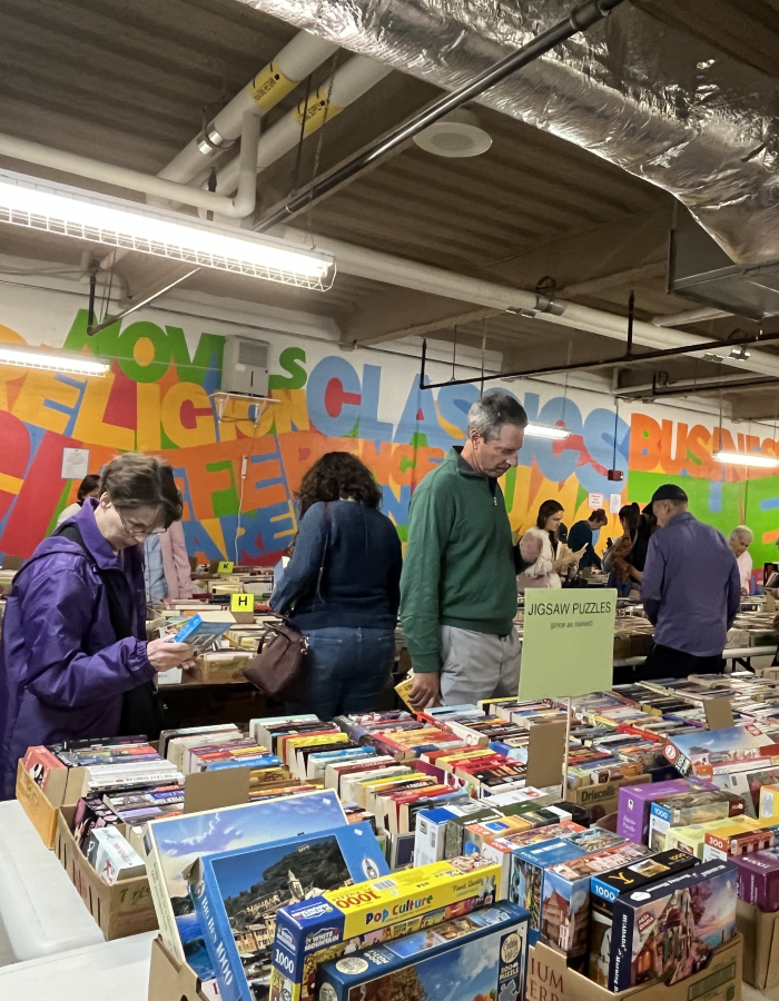 Thousands of items sorted in 50 categories. Everyone is covered in this fundraiser - from tots to teens to adults. Featuring a large assortment of items including bestsellers, fiction and nonfiction, audio/visual, and much more.