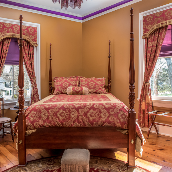 The Bevin House was built in 1872 by Philo Bevin, who joined his three brothers in the Bevin Brothers Manufacturing Company. Since 1832, this factory made a wide variety of bells; from sleigh bells, cow bells, tea bells, to call bells and many more. They were the largest supplier of bells in the early 1900's. Philo had the mansion built late in his life as a testament to his achievements and to be known as the wealthiest man in town. Nearly two centuries later, and six generations of the Bevins, they are still producing bells today. In the 1940's, it was home to Alice Bevin, a world renowned artist. She was the granddaughter of Philo Bevin and much beloved by her neighbors. She left a mark on this home by painting murals in the third floor bathroom and in the barn where she had her studio.