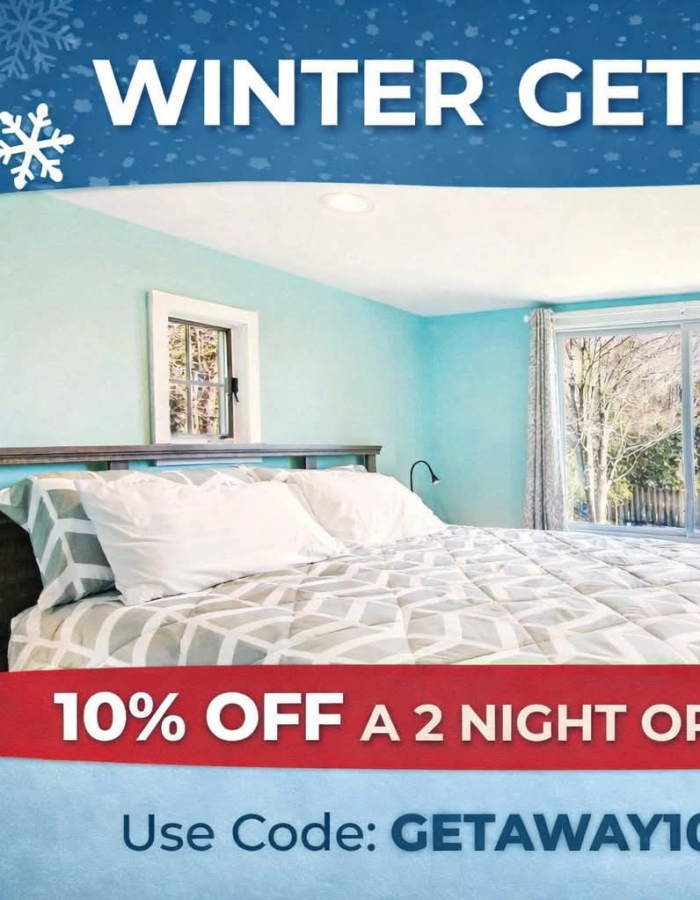 Leave the ordinary behind and unwind on our picturesque farm winery. Relax beside the tranquil winery pond or along the serene shores of Amos Lake, where nature sets the pace and relaxation comes naturally. Guests enjoy a complimentary, freestyle self-serve breakfast available 24/7—perfect for early risers, late nights, or anything in between.
