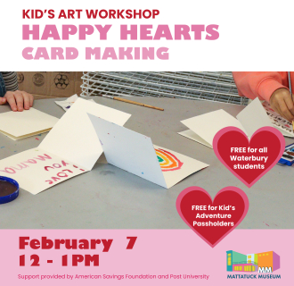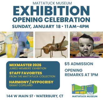 The Mattatuck Museum collects and exhibits American art and cultural history – with a strong core of Naugatuck Valley history and Connecticut artists. The Museum uses its historical collections to tell the stories of the community and often partners with neighborhood associations, ethnic organizations, and manufacturing groups. Featuring more than 25 changing exhibitions each year, the Mattatuck highlights the diversity of the community, addresses issues of contemporary society, presents the work of emerging artists, features blockbuster shows of internationally renowned artists, and emphasizes the strengths of their permanent collection. Changing exhibits of contemporary sculpture is featured throughout the Museum’s outdoor spaces – in the courtyard garden and on the rooftop.