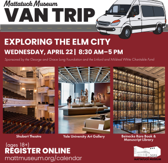 The Mattatuck Museum collects and exhibits American art and cultural history – with a strong core of Naugatuck Valley history and Connecticut artists. The Museum uses its historical collections to tell the stories of the community and often partners with neighborhood associations, ethnic organizations, and manufacturing groups. Featuring more than 25 changing exhibitions each year, the Mattatuck highlights the diversity of the community, addresses issues of contemporary society, presents the work of emerging artists, features blockbuster shows of internationally renowned artists, and emphasizes the strengths of their permanent collection. Changing exhibits of contemporary sculpture is featured throughout the Museum’s outdoor spaces – in the courtyard garden and on the rooftop.