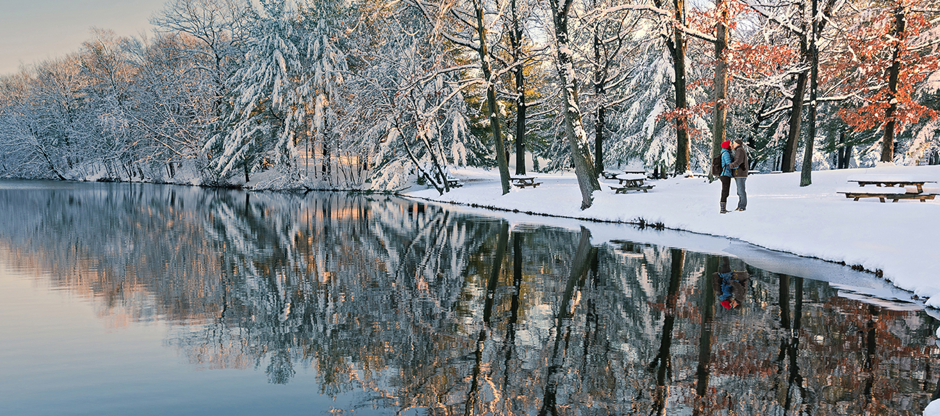 28. Take a winter stroll. Walk hand-in-hand with your special someone through peaceful parks such as West Rock Ridge State Park in Hamden, Wharton Brook State Park in Wallingford, and Elizabeth Park in West Hartford.