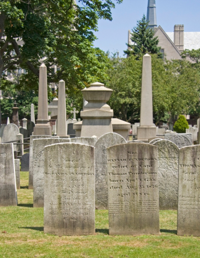 The oldest historic site in the city, this 1648 spot featured spooky tombstones.