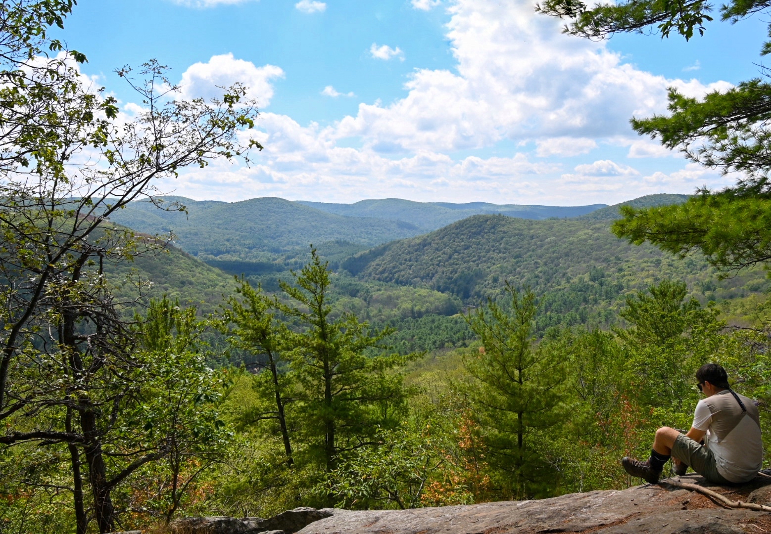This heart-pumping moderately hard trail should be on everyone’s hiking bucket list. Starting at the beginning of the trail you’ll have two choices — you can either start by going left on the blue trail or right. Personally, I recommend going right because it’s the quickest to the pine knob loop vista point. It won’t take long to realize that this hike really gets the heart pumping ... it may even have you thinking, "why did I even choose this?" Don’t be discouraged because once you finish the 1-mile hike up, you'll be more than happy with the rewarding views. Breathe and enjoy the views, and relax knowing that the rest of loop is nowhere near as intense. You’ll realize throughout this hike why it's called Pine Knob — the smell is absolutely amazing. There's even a waterfall along the trail that you can dip your feet in to cool off. Please note water levels may vary due to the season. If you want to see the waterfall at its best I recommend visiting after a heavy rainstorm or during the spring. Fun fact about this hike is that it partially connects to the famous Appalachian trail.
