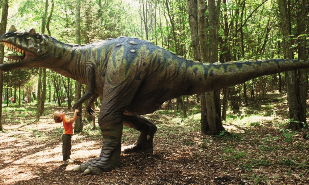 At Nature’s Art Village, you are sure to come across a dino or two along the 1.5-mile nature trails. The dinosaurs here are accurate, life-sized and a few may even surprise you. There’s even a “MAZE-asaurus” that you need to slide through a Giant T-Rex to escape.