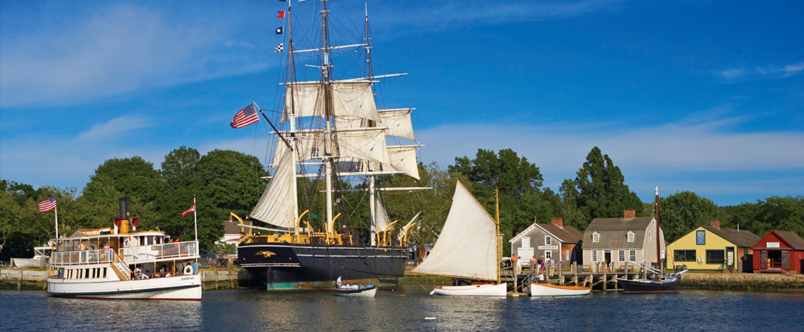 El verano es la época para estar cerca del agua. Disfrute del encanto y la serenidad de Mystic en el histórico Whitehall Mansion Inn de alrededor de 1771 con alojamiento con decoración de época y muy cerca del río Mystic. Visite el cercano Museo Mystic Seaport para conocer la rica historia marítima de la región y el Acuario Mystic para un encuentro cercano y personal con la vida marina. Reviva su aventura durante el almuerzo en Red 36 , que ofrece cocina estadounidense ecléctica y vistas de Mystic River. Camine por el centro de Mystic para comprar boutiques y tomar un helado; incluso puede ver cómo se eleva el histórico puente levadizo para permitir el paso de los grandes barcos.