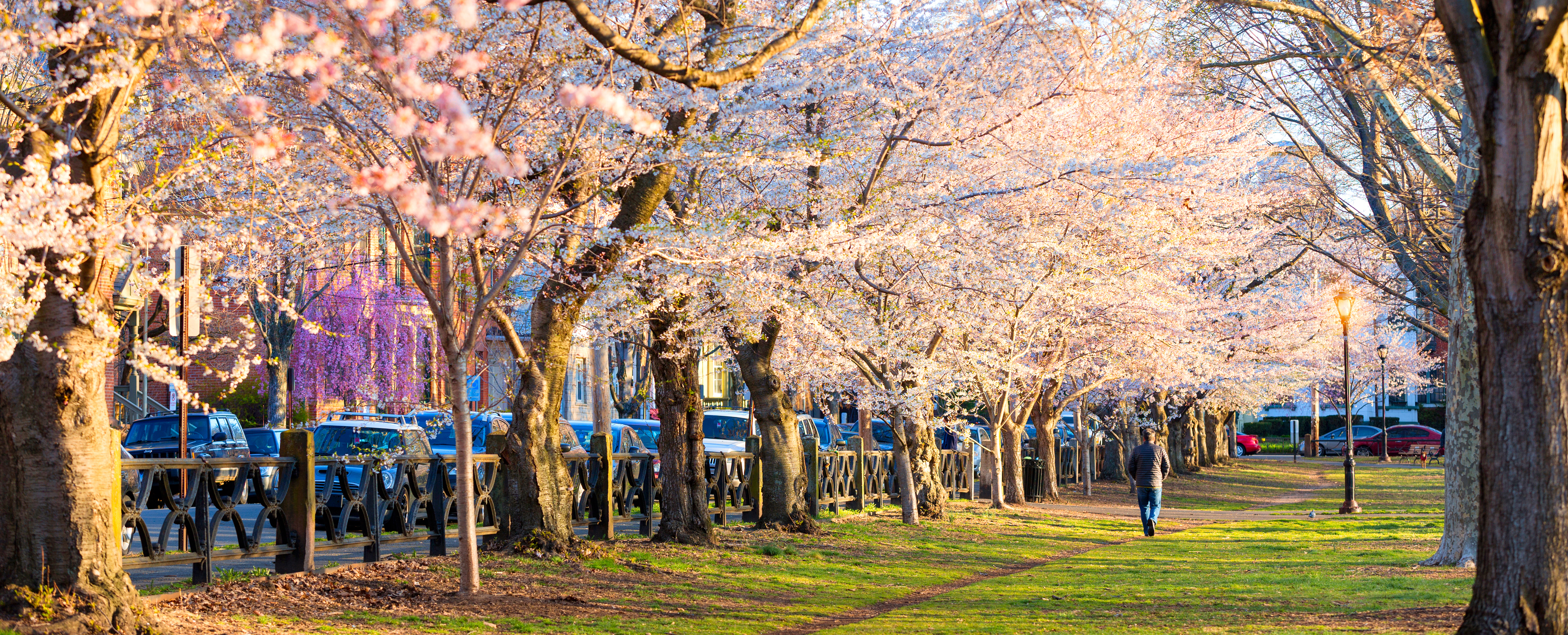 Uno de los árboles con flores más hermosos de Connecticut es el cerezo. Pero anote en su calendario que solo florecen durante una o dos semanas, generalmente en abril. Estos árboles, que anuncian la primavera y bordean la histórica Wooster Square de New Haven, son una vista impresionante.