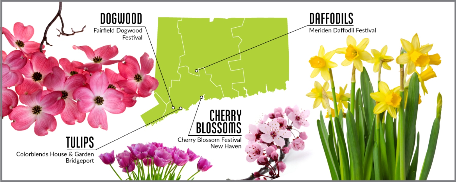 Una vez que se derrite la nieve, la primavera llega rápidamente a Connecticut y nos regala jardines coloridos, campos abiertos, árboles en flor y maravillosos festivales primaverales . En abril y mayo, florecen los cerezos, los tulipanes, los narcisos y los cornejos. A continuación, se muestran algunas de las mejores y más grandes oportunidades de observación, así como algunas sugerencias de otros lugares de Connecticut que también están comenzando a florecer.