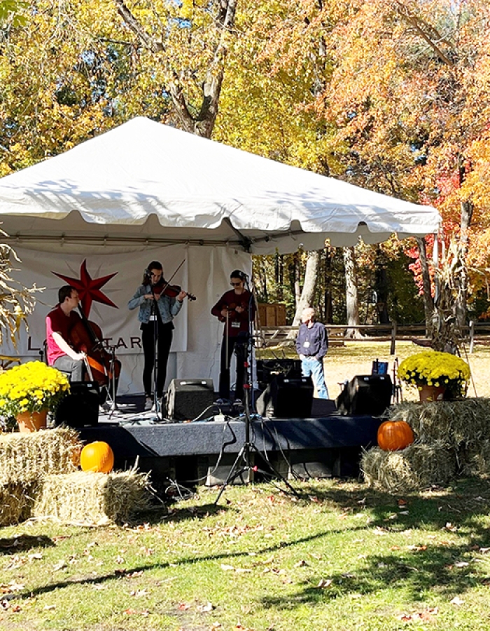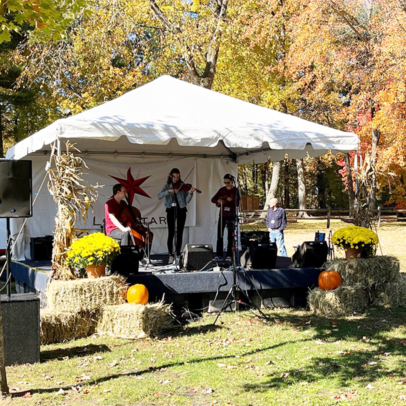 of forest and fall foliage on Dunning Lake, there will be music on two stages, with food trucks,