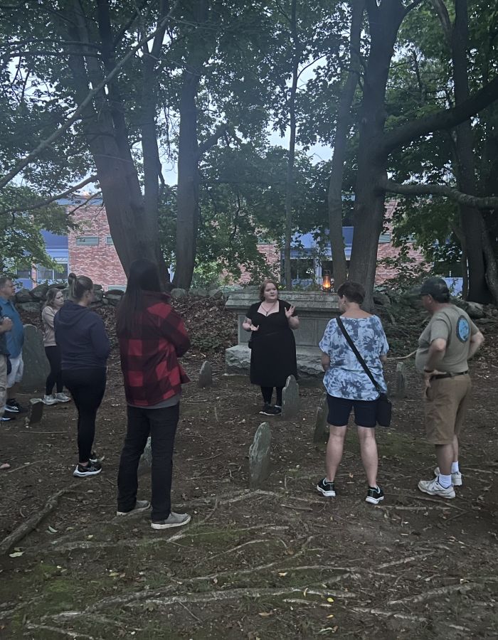 From Captains of King Philip’s War who saw unspeakable horrors to tales of true vampires amid epidemic scares, From Patriot defenders who met bloody ends to abolitionists and freed enslaved people’s making their mark on the Mystic community, there’s no shortage of notable or frightening accounts. The graveyard tour walks visitors through early American history in New England through times of fear, sickness and war. The trials and tribulations left behind several hauntings and the graveyard has had activity of footsteps, voices and full-bodied apparitions for years – many of which guests experience on our tour. The Graveyard tour ends with a special spooky surprise – perfect for history and ghost lovers alike. The graveyard tour walks guests through time amid the graves of the people who made Mystic, Mystic. Learn about colonial burial practices and graves on this guided tour. This is a 2-hour walking tour taking off from the gates of Whitehall Burial Ground. This tour is a blend of history and mystery.