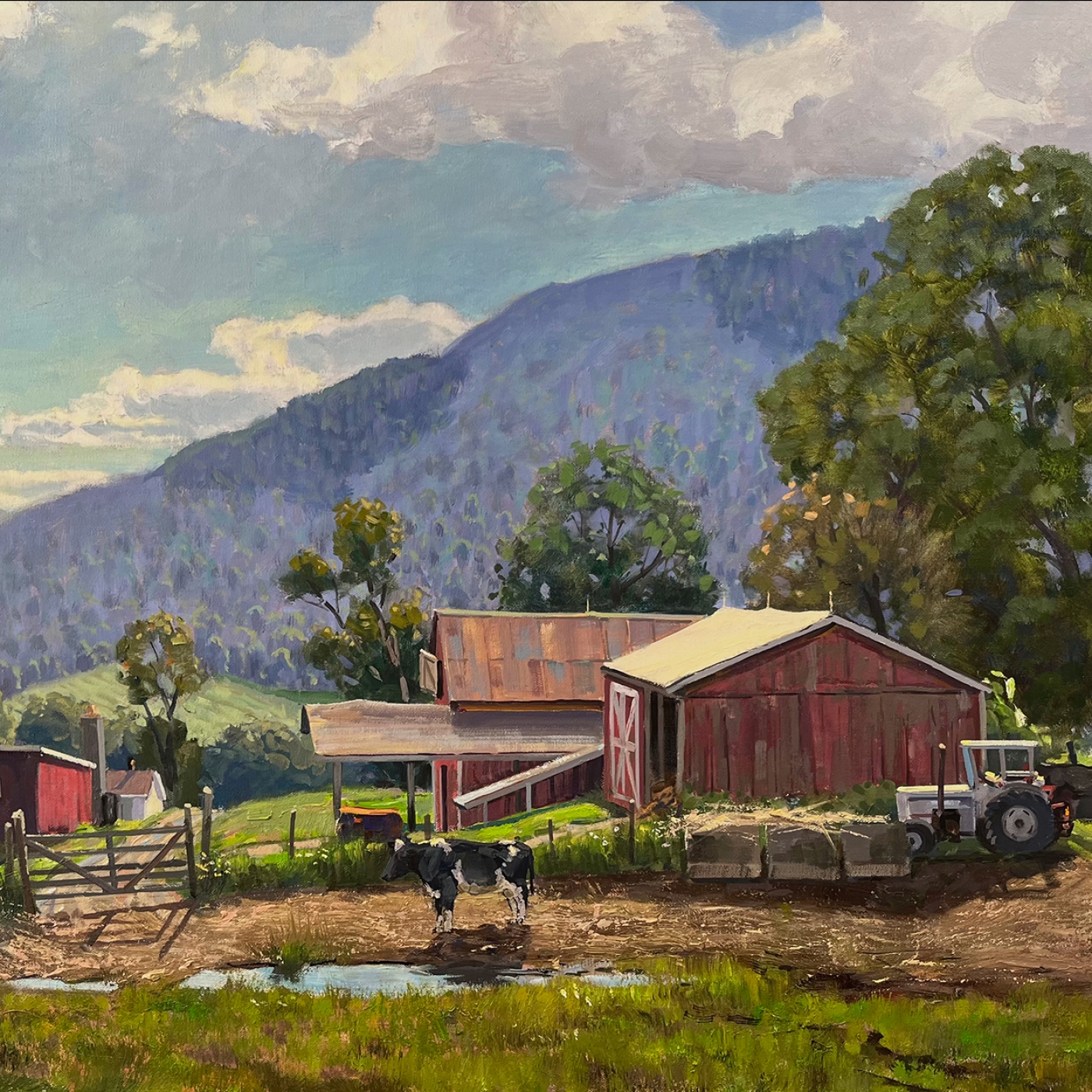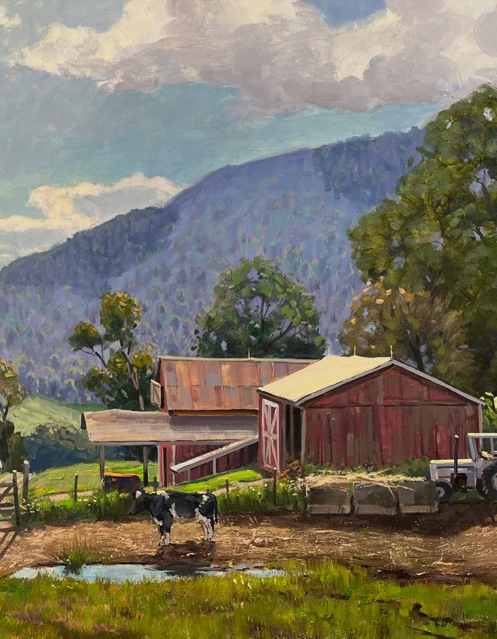 image: Thomas Adkins, Barnyard, Litchfield Hills, oil in New England Landscape