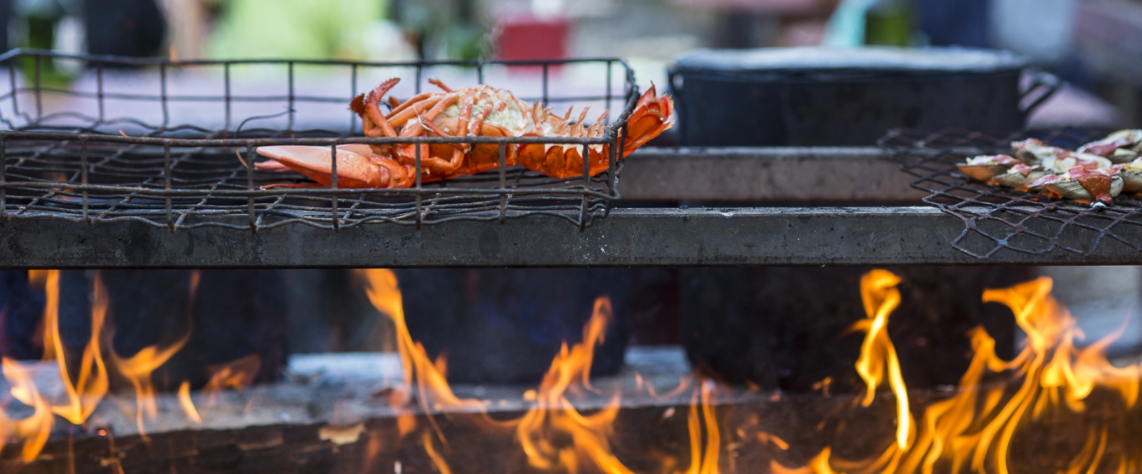 Pick a summer Saturday and start it with lunch at The Place, a much loved roadside spot on the Boston Post Road in Guilford where visitors dine outdoors as a wood fire roasts clams, lobsters, corn and a growing menu of other favorites. Don’t expect to find chairs – tree stumps are set up around bright red tables – but do expect to find a simple charm that dates back to the 1940s.