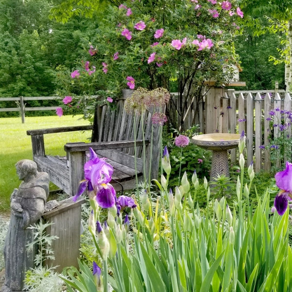 - Over 2 acres of land with large entertainment decks and paver stone patios, charming New England rock walls, shady trees, lush green lawns, and lovely gardens