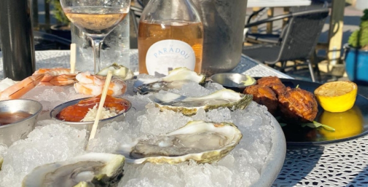 A wall of large windows overlook the main street in Mystic, allowing diners to watch the hustle of the world pass by while sipping on oversized martinis or exceptional wines and feasting on creative pastas, fresh fish and homemade desserts. Black and white photographs fill the walls of the bar, which flows into a dining room adorn with flickering white candles reflecting in mirrors placed throughout.