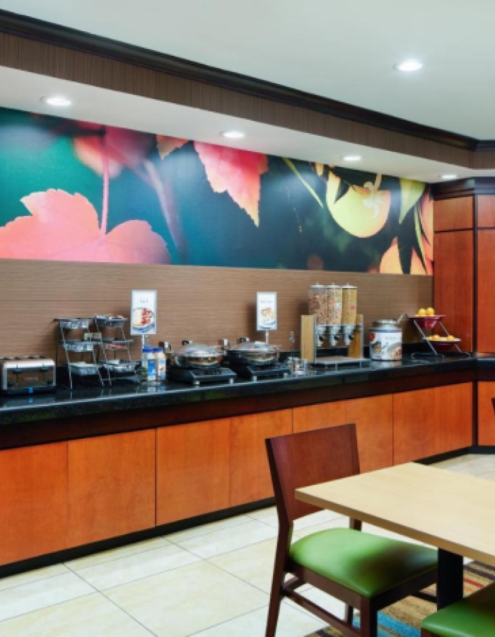 Facility amentities include: indoor heated pool, fitness room, 24-hour market, 24-hour coffee and tea service in the lobby, business center, free local calls, and complimentary hot Breakfast. We also have a meeting room onsite and Craft Kitchen restursnt is located within the hotel.