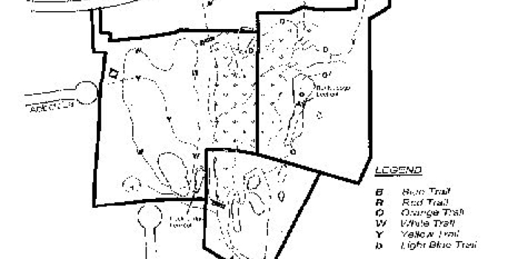 The trail system makes a wide loop around the eastern portion of the park. An attractive park which contains many interesting features, chief among which are the many moss-covered ledge rocks.